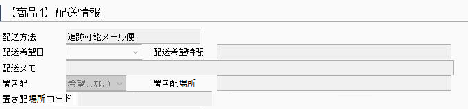 商品詳細の、【商品1】配送情報 内に、置き配関連の項目を追加します。